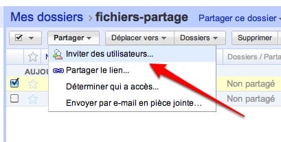 3- À droite du nom de votre fichier, vous trouverez le menu «Partager ce dossier».
