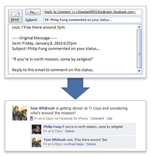 Lorsque l’un de vos «amis» commente par exemple votre statut, l’une de vos photos, votre mur ou l’une de vos vidéos, vous recevrez comme d’habitude un mail vous prévenant que votre compte a été commenté. Grâce à cette fonctionnalité, vous n’avez plus à vous rendre sur votre compte Fecebook pour répondre à un commentaire.