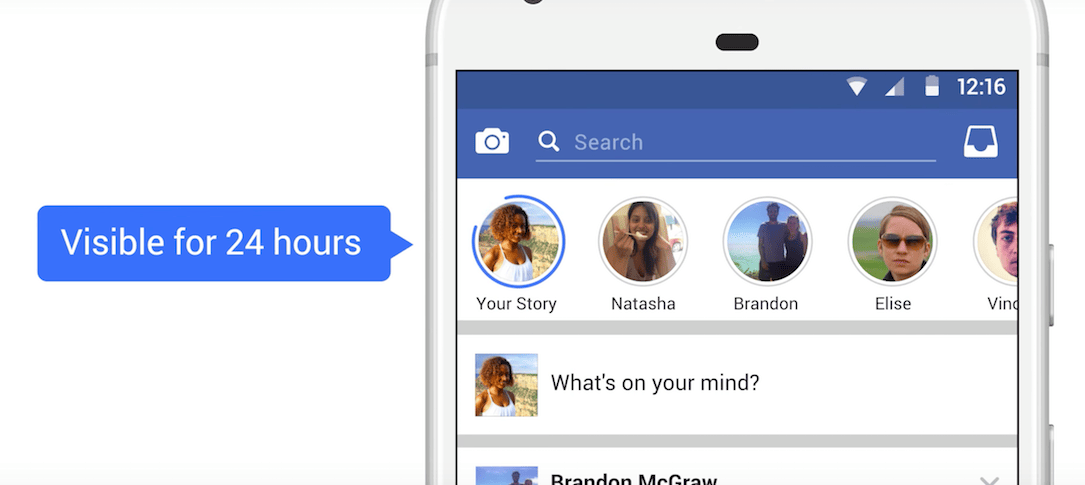 Dans sa version actuelle, les utilisateurs de Facebook qui vous ont partagé une Stories apparaissent dans la partie supérieure de votre fenêtre. Comme sur Snapchat, les Stories de Facebook sont accessibles 24 heures suivant leur publication.