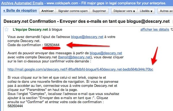 Voilà, votre alias est créé et il est fonctionnel. Maintenant, voyons de quelle façon configurer votre adresse mail pour qu’elle vous permette d’envoyer des messages en utilisant l’adresse de l’alias.