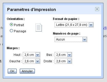 Dans la boîte de dialogue « Paramètres d’impression », vous pouvez sélectionner le format du papier (lettre, légal ou A4), l’orientation de l’impression, modifier les marges et ajouter la numérotation des pages. Une fois que vous avez défini vos choix, vous appuyez sur « OK ». Automatiquement, Google Documents générera une version PDF de votre document. C’est ce fichier que vous imprimerez. Comme les fichiers PDF donnent des résultats d’impression identiques sur tous les ordinateurs, vous ne devriez plus avoir de surprise en imprimant des documents depuis Google Documents.