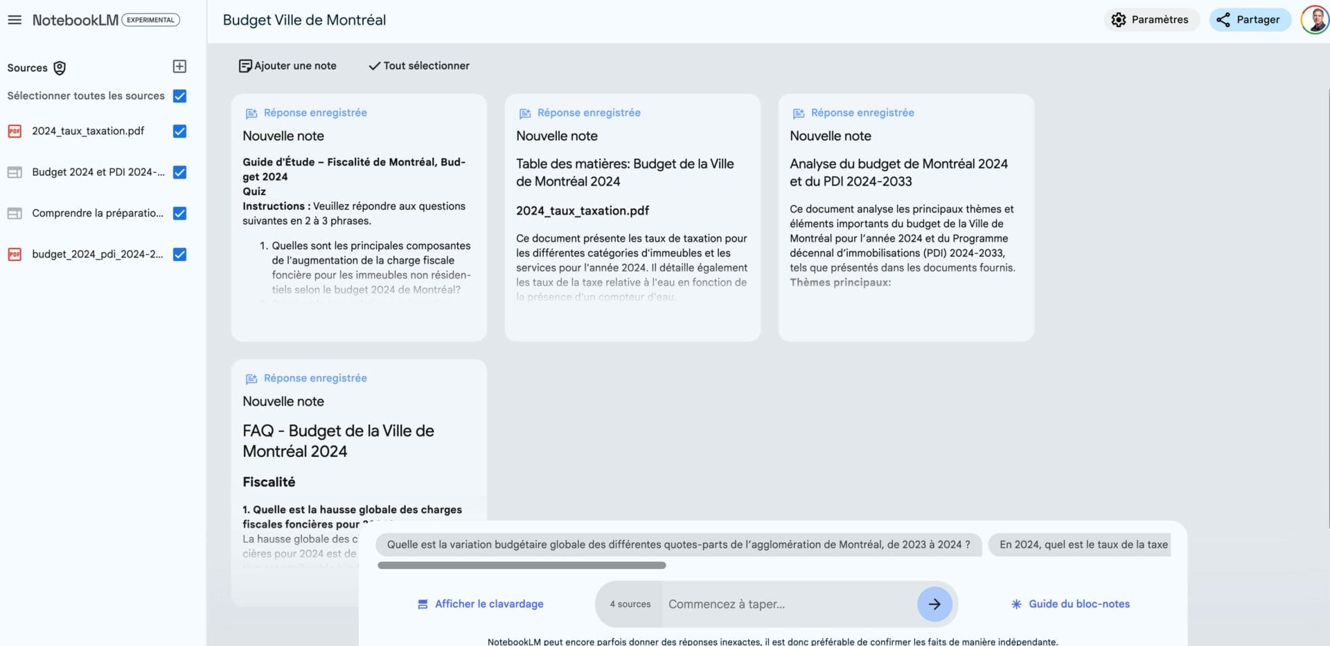 Par exemple, j’ai recherché dans le budget de la ville de Montréal (format PDF) la rémunération versée par mon arrondissement à ses salariés. NotebookLM n’a pas été en mesure de me fournir la réponse alors que ChatGPT y est arrivé facilement. Ici, il s’agit d’un problème tout simple : NotebookLM n’a pas été en mesure d’extraire les informations du tableau contenant ces données.