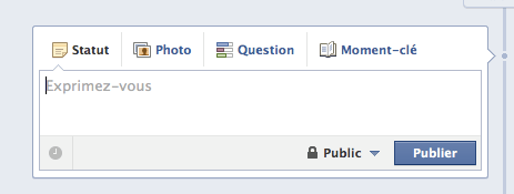 Les moments clés d’une Page Facebook permettent d’ajouter des faits ou moments importants de votre organisation ou entreprise sur votre espace. Pour utiliser cette fonctionnalité, vous devez dans un premier temps créer le premier Moment clé qui correspond à la création de votre page ou de votre entreprise. Pour créer un moment clé, rendez-vous dans la boîte de mise à jour de statut et sélectionnez Moment clé.