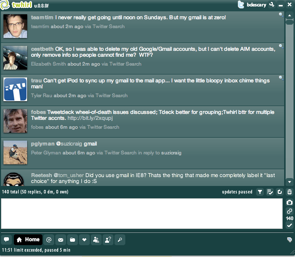 J’aime beaucoup cette nouvelle version de Twhirl. À mon avis, trois choses manquent encore à ce client.